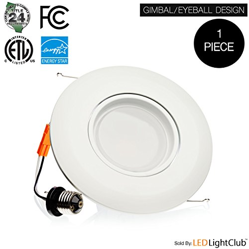 (1-Pack) 6-inch LED Adjustable Gimbal Downlight, Dimmable, 15W (120W Replacement), Rotatable Eyeball Retrofit Recessed Trim, 3000K (Soft White), 1060LM, ENERGY STAR & ETL-Listed