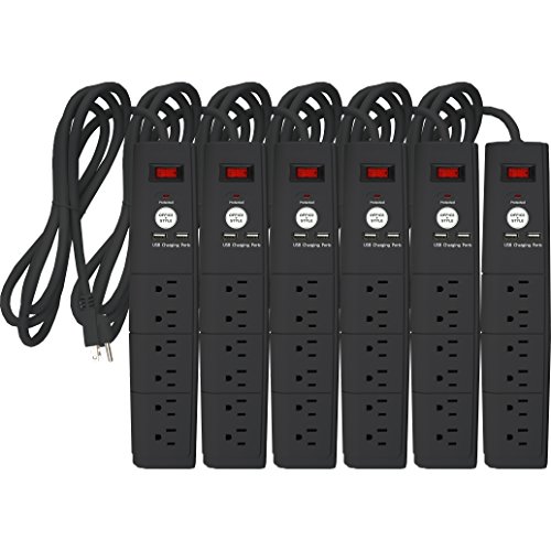 Office + Style 6 Outlet Surge Protector with Dual USB Ports and 6 Ft Cord, Black Pack of 6