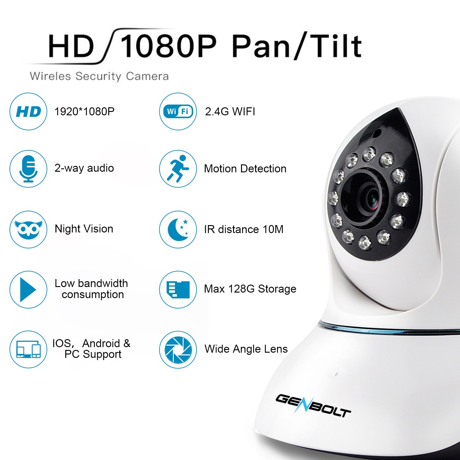 GENBOLT Wireless WiFi Security Dog Camera Specifications: