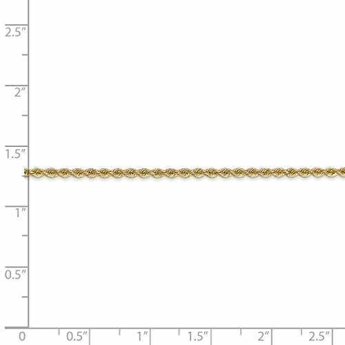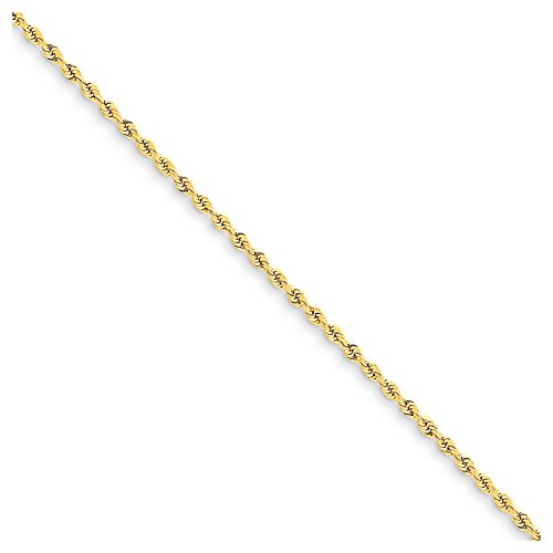 Chain Type: RopeAnklet Type: Chain StylesMaterial: Primary: GoldMaterial: Primary - Color: YellowMaterial: Primary - Purity: 14KChain Length: 9 inChain Width: 2 mmClasp /Connector: LobsterFeature(1): Solid