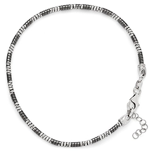 Piece together the ideal summer ensemble with this two-tone anklet fashioned from sterling silver with black ruthenium plating. It features a 3mm snake like chain accented diamond-cut detailing, a fancy lobster clasp and is adjustable in length from 9 to 10 inches. Made in ItalyFeature