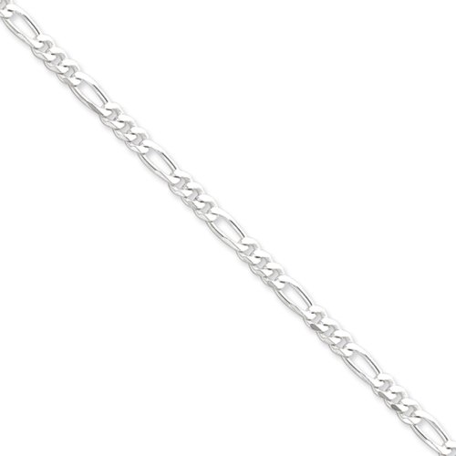 Round and oval links made of polished sterling silver interlock in a reoccurring three and one pattern that closes with a lobster claw clasp. The easy elegance of a solid Figaro chain looks great with dress or casual wear and the 4.25mm width, 9-inch length is perfect as a bracelet or anklet. Made in ItalyFeature