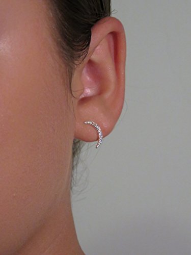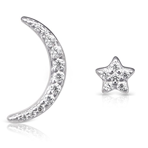 Charming sterling silver and CZ earrings, consisting of a sparkly moon shaped climber on one side with a star shaped stud on the back. The sterling silver is rhodium plated, making the earrings more durable and resistant to tarnish. These super stylish and unique earrings will enhance any outfit. These 925 sterling silver earrings come in an attractive velvet pouch. Outstanding gift for yourself or for a loved one.Feature