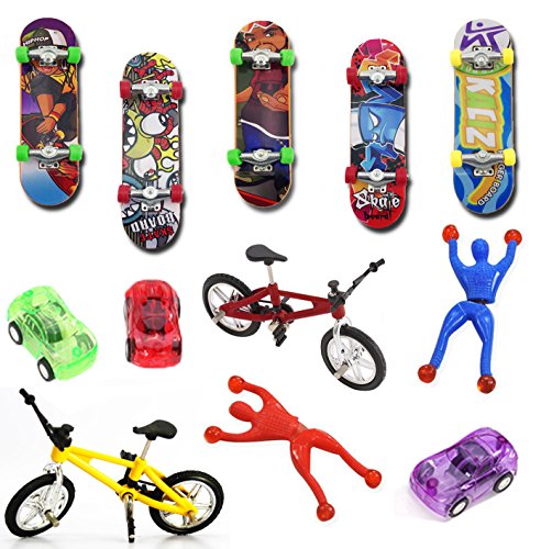 Product DescriptionSuitable Person: Kids of all ages Package Included: 5 Finger boards 2 Finger Bikes 2 sticky wall Climbers 3 Plastic Pull Back Race Cars0