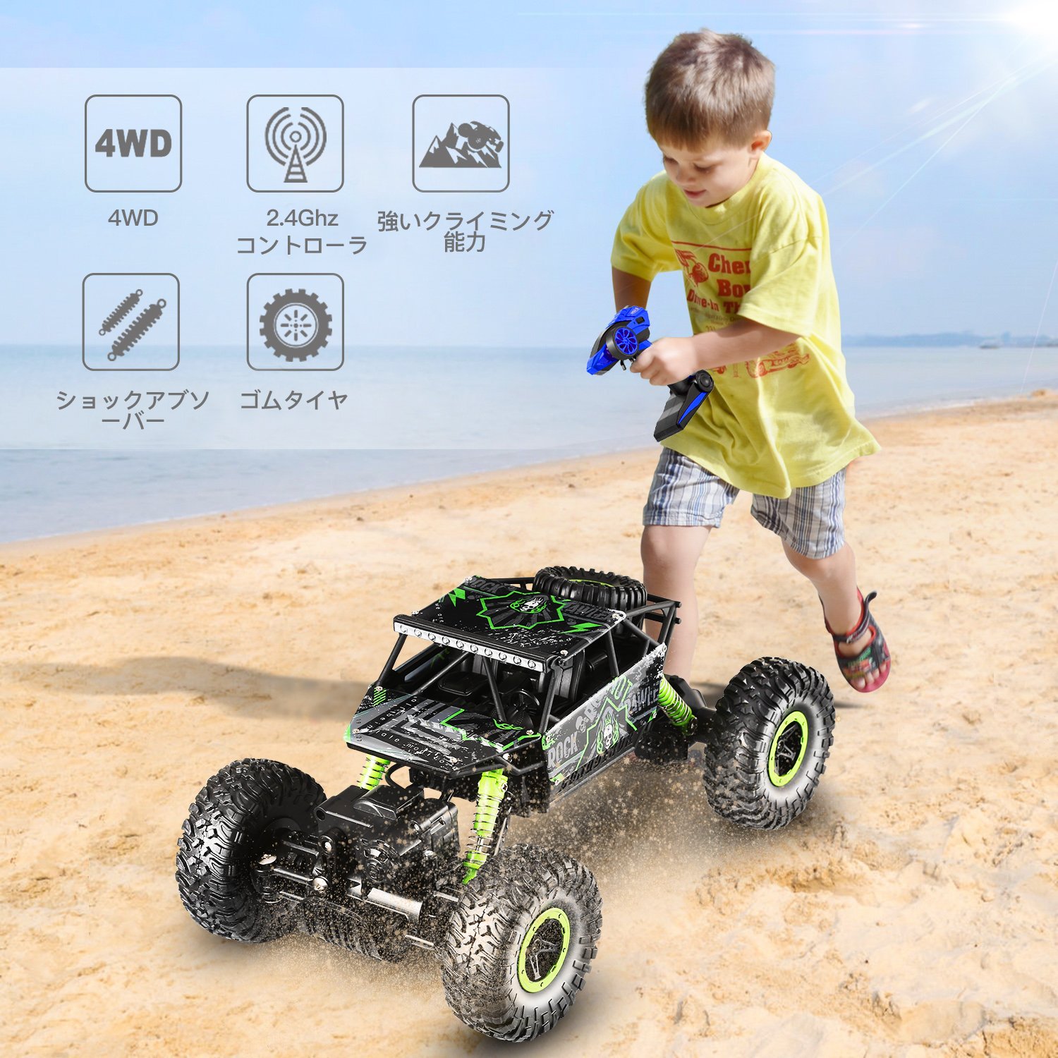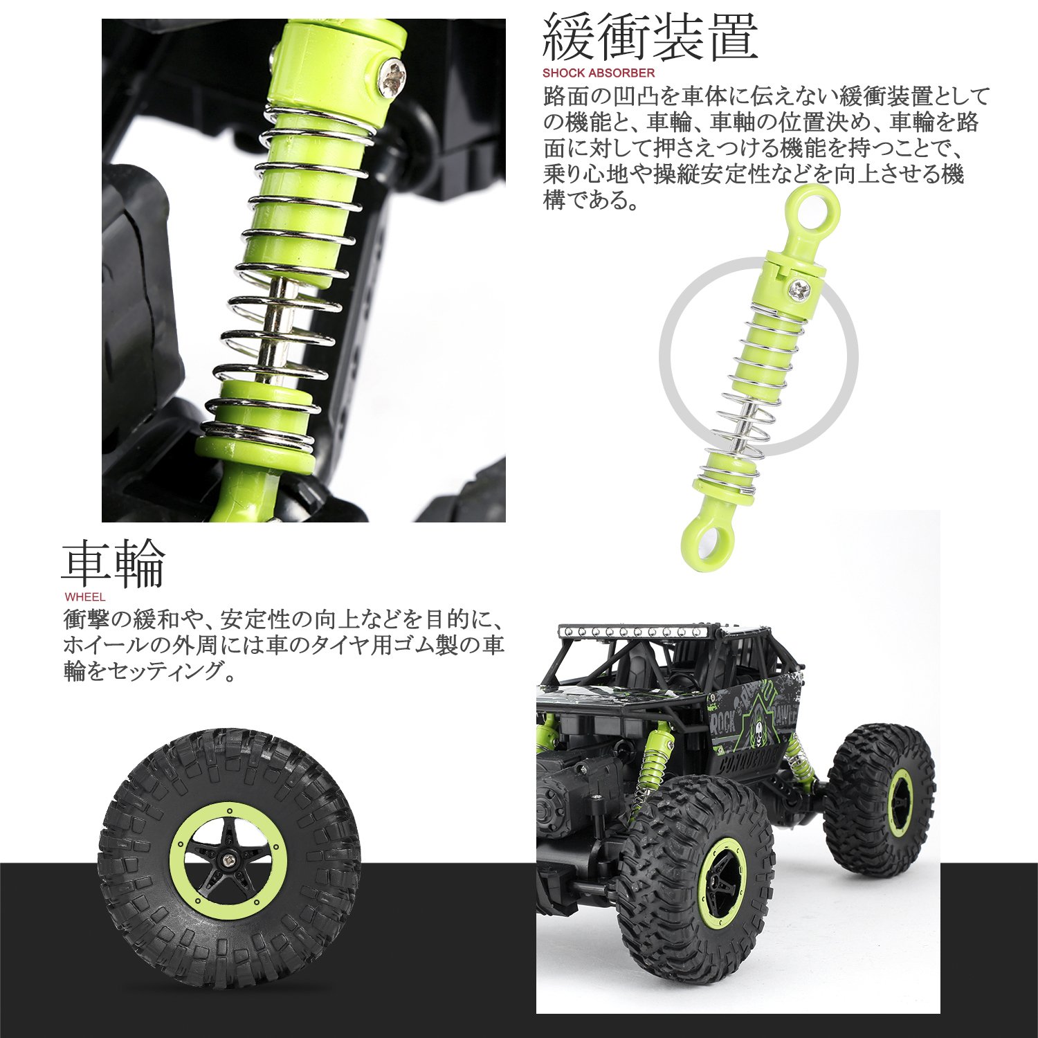 By using front and rear suspension, 4.8V 700mAH lithium battery, rc motor, powerful, powerful, high grip powerful "V" type tread wide tire creates amazing driving power.