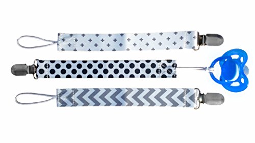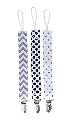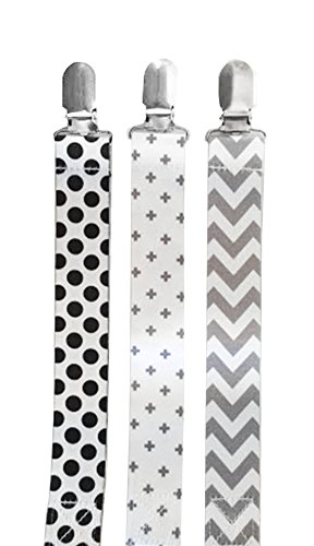 -. Feature : FUNCTIONAL - Keep your child's pacifier, teethers, and toy rings close by and off the ground. Our clips attach easily to any type of baby clothing, bibs, or blankets and stay in place, worry free. / MODERN DESIGNS - Stylish unisex patterns easily suit any outfit. Modern and neutral colors work great for both baby boys and girls to compliment all those cute little outfits. / HIGH QUALITY - Well made and sturdy design so your little one can't pull it off. Our clip is made of durable metal that fastens securely and will not damage your baby's clothes. Straps are carefully stitched for optimal support of the weight of attached teethers as well as your baby's movements. / PERFECT BABY SHOWER GIFT - Moms and dads love these pacifier clips. / 100% SATISFACTION GUARANTEED - We stand by our guarantee so if for any reason you are not happy with your Sweet Baby A pacifier clips, you can return them for a full refund, no questions asked! Pacifier not included.