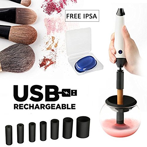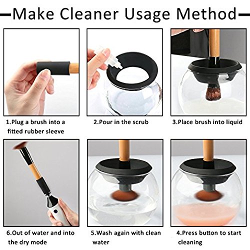 AMILE Electric Makeup Brush Cleaner & Dryer Machine, 7 Rubber Holders, Automatic Clean in Seconds & Dry in 360° Rotation with a Makeup Puff for All Makeup...