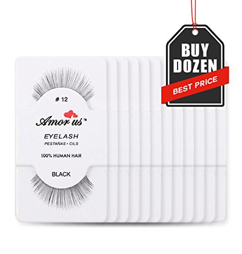 Amorus 12 Pairs Multipack #12 False Eyelashes Dozen Set 100% Natural Hair Black Handmade Comfortable Reusable Fake Lashes Pack
