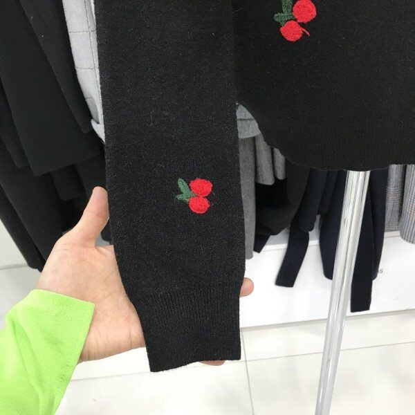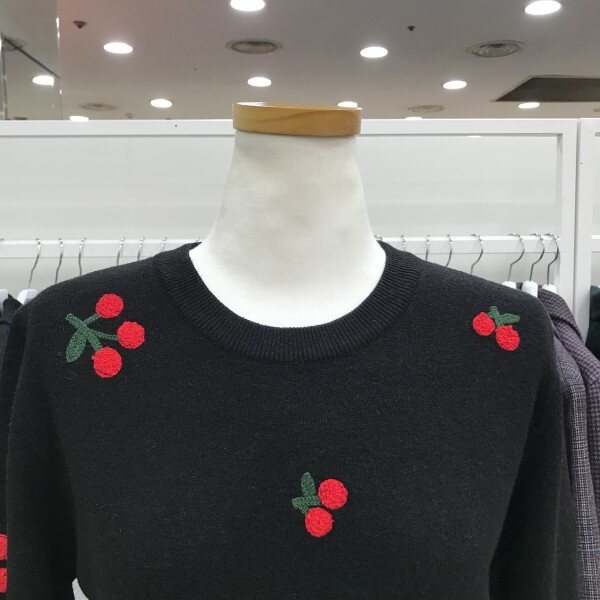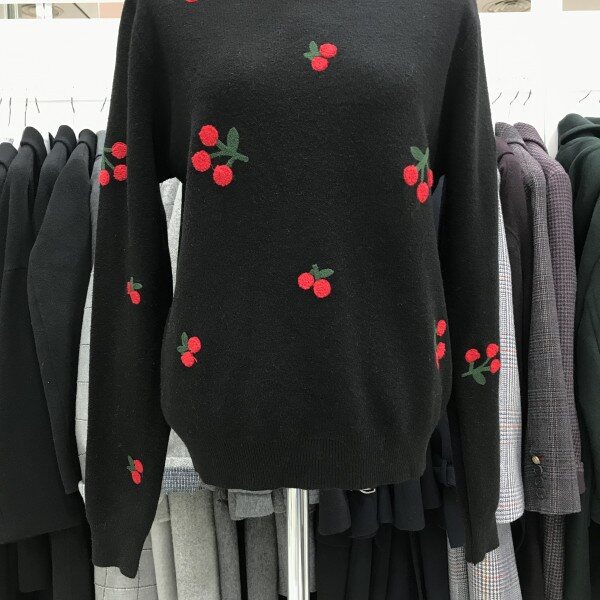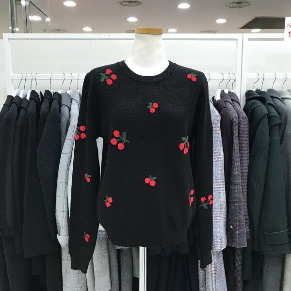 체리 문양 자수 니트 티셔츠입니다도톰한 원단감으로 겨울내내 따뜻하데 입으실 수 있답니다체리 자수 포인트로 이너로 활용도가 높은 라운드 기본 디자인이랍니다사이즈 FREE가슴둘레 46cm총장 58cm