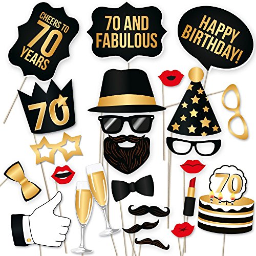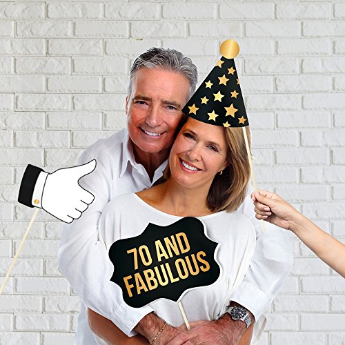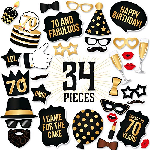 70th Birthday Props by PartyGraphix. Perfect for 70th Birthday Photo Booth. Durable. 34 Black & Gold Pieces (Gold and Black, 34)