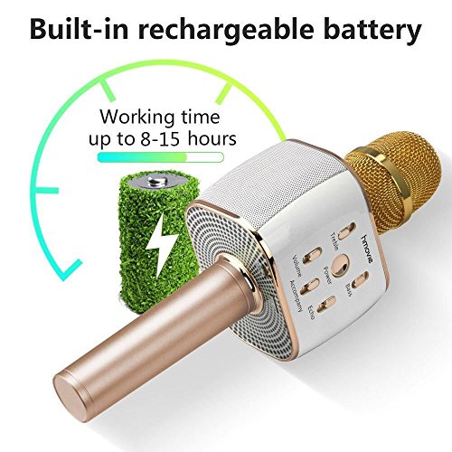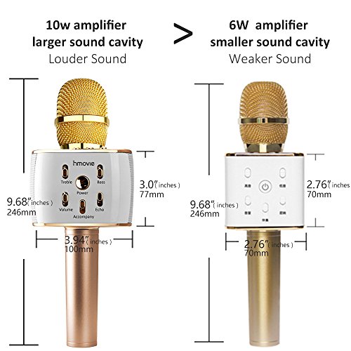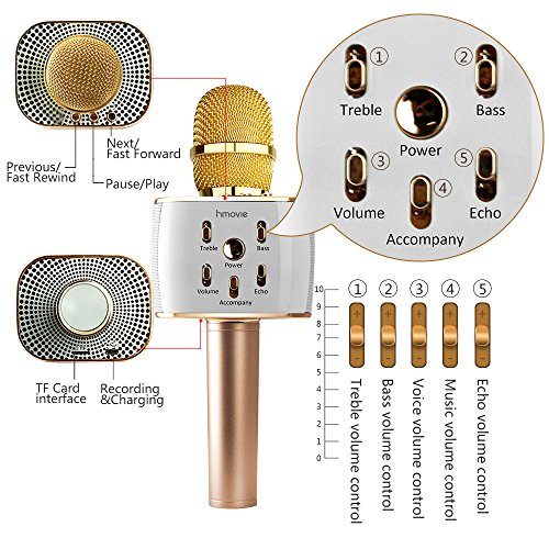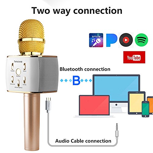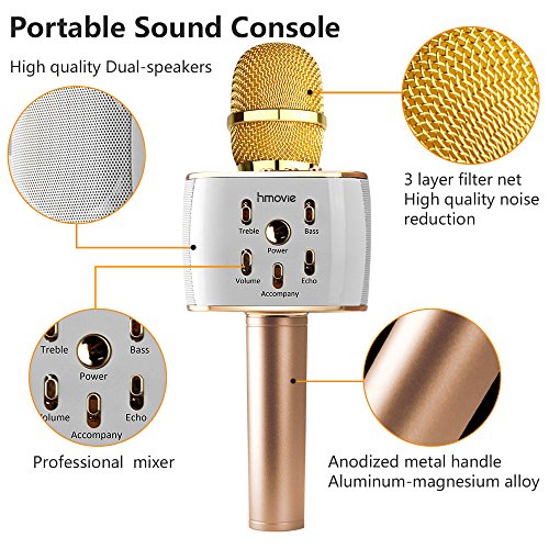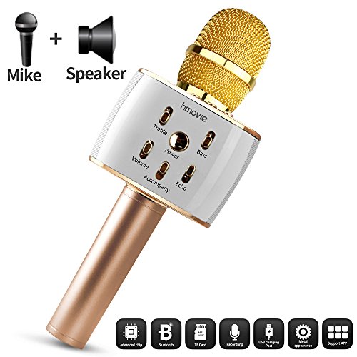 Hmovie Wireless Microphone Karaoke Mike Pro, 4-in-1 2600mAh Bluetooth Aluminium Alloy Karaoke Machine KTV for Apple iPhone Android Smartphone or Pc