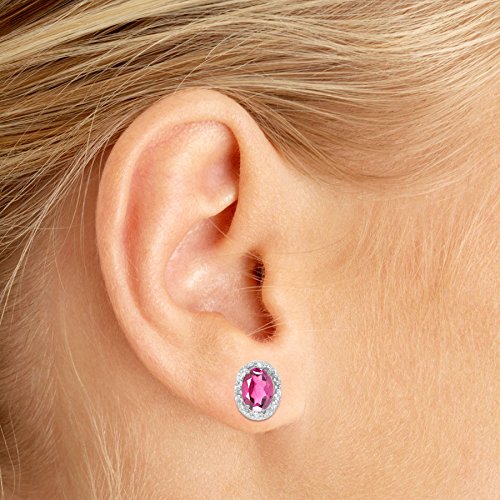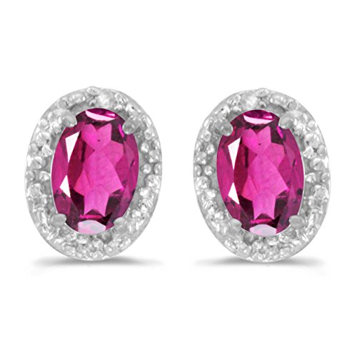 These 14k white gold oval pink topaz and diamond earrings feature 6x4 mm genuine natural pink topazs with a 0.86 ct total weight and sparkling diamond accents.
