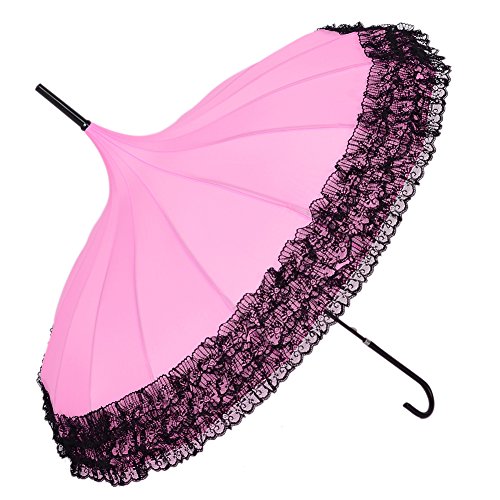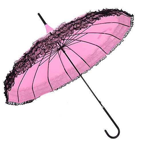 Description: Item type: Pagoda Parasol Type: Straight umbrella Application: Outdoor Style: Sweet Crowd: Female Shape: Pagoda Color: Pink/Violet/Black/Bright red/White/Blue Size: diameter 88cm(open),86cm(closed) Rib length: 56cm Specifications£º16 ribs Weight: 420g Pattern: Solid color Fashion element: Lace Trim Feature: Anti-Uv/Sunproof SPF: UPF £¾30,£¨UVA£ⓒAV£¼5% Suit for season: All year around Umbrella surface material: High density pongee Lace Rib/Rod material: Black paint steel Set include: 1 * Pagoda Parasol 0 |
