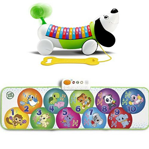 -. Feature : LeapFrog AlphaPup:Teaches: The Alphabet: Children who can recognize letters with confidence have an easier time learning letter sounds and word spellings. Phonics skills: To read independently, children must understand the relationship between the sounds in spoken words and the letters that represent those sounds. Gross Motor Skills: As children learn to roll over, sit, stand, and even dance, they are developing the ability to coordinate their large muscles. / AlphaPup makes learning meaningful and fun by responding to your child's actions. Eager new walkers have a pal to cheer them on, or children can have a seat and switch between songs and learning modes as often as they desire. Pressing buttons produces a range of playful and curricular audio surprises that children can control by pressing favorite buttons again and again. As children grow, they can also begin to make new connections, such as linking printed letters with their names and sounds. / Learn & GrooveTM Musical Matover 4-feet of interactive playmat for jumbo-sized learning fun. Little ones can discover numbers, animals and instrument names as they jump around the mat in Explore mode. In Music mode, each step brings instrument sounds to life kids can jam along to 10 popular melodies or compose their own tunes from scratch. Game mode challenges kids to fly, waddle and more to reach specific numbers, helping them develop balance and coordination as they laugh and play. / Twist, dance, leap, laugh, count and learn with 50+ songs and phrases. Play 3 ways: Explore numbers and instruments, create music and get moving. Helps teach numbers, music and instruments and gross motor skills. Educational and active toy for kids ages 2+ years old. Three AAA demo batteries included.