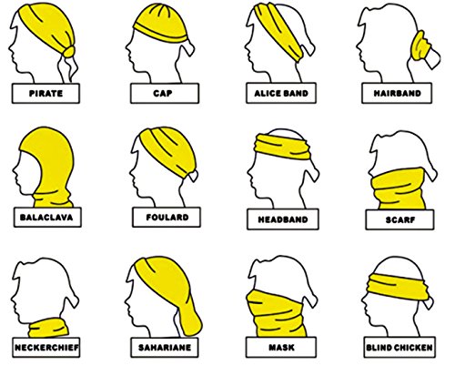 -. Feature : Made of soft, breathable quick-drying microfiber polyester / One size fits most adults / 12+ ways to wear: neckerchief, headband, wristband, mask, hair-band, balaclava, scarf, headband, saharaine, pirate cap, beanie and bandana / Moisture-wicking, thermal protection from cold, wind and dust / Rave and festival fashion all over print skull style