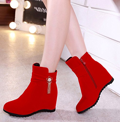 Binding : Apparel Product Description A pair of suitable boots means a lot to a lady. It can not only prevent her feet from the harm from the whether, also, it can help she well display her vintage and feminine temperament. However, have you get prepared to welcome the cool weather? You need this pair of boots. With this pair of boots, you don't need to worry about that you would get tired easily. Just as you can see, this pair of boots has hidden wedge heel which make them wears very comfortable and can well display your charm and femininity. And its lug sole can well antiskid, you don't need to worry when you step on the slippery street. What's more, it has one of the most popular elements--rhinestones which is fashion and vivid, can well display your charm and individuality. Still hesitate? Just let them share your life with ease. 0