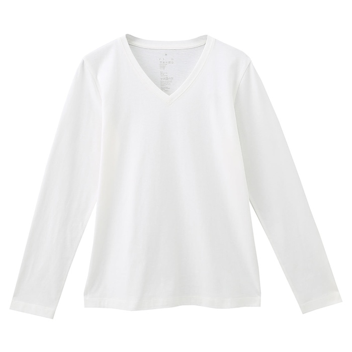 원본상품명: オガニックコットンVネック長袖Tシャツ 婦人XSオフ白コンビニ受取可