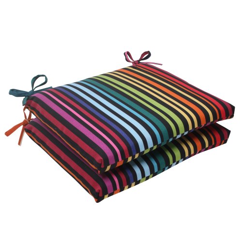 Pillow Perfect Indoor/Outdoor Godivan Squared Seat Cushion, Black, Set of 2