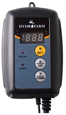 "Hydrofarm's Jump Start Heat Mat Thermostat controls the temperature of heat mats by providing constant optimum temperature for plants, seedlings and cuttings. It is ideal for maintaing root zone/rooting temperatures in a tray and dome. Easy plug-in operation with LED indicator light, digital temperature selection, and three-prong ground plug. Controllable range from 68 to 108 degrees Fahrenheit. Includes temperature probe with 6' cord. Choice of Fahrenheit or Celsius digital readout. Heat mats are not just for gardening anymore! They are very useful for providing consistent, controllable heating for other hobbies including reptile and arachnid keeping (heating for enclosures and terrariums), homebrewing (maintaining of fermentation temperatures), and more. With this thermostat, you can easily expand any heat mat's functionality so that it provides the precise level of warmth your pets and projects require to flourish. The ability to dial in and maintain your preferred temperature means you can rest assured and no longer need to constantly monitor temperature, whether in colder or warmer environments. The Heat Mat Thermostat is the only ETL-certified heat mat thermostat on the market. ETL (Intertek) is a respected inspection laboratory which specializes in product safety testing. ETL certification is proof that a product complies with widely-accepted safety standards. The Jump Start Heat Mat Thermostat is compatible with all heat mats, and is an optional accessory for Hydrofarm Seedling Heat Mats. "Feature