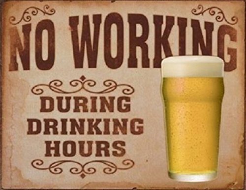 BRINGS A SENSE OF UNIQUENESS TO YOUR HOME/HOME BAR/OFFICE/GAMES ROOM/PUB: Combining old fashion and modern times, NO WORKING DURING DRINKING HOURS tin sign will make a fabulous addition to any room.