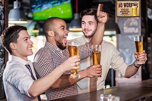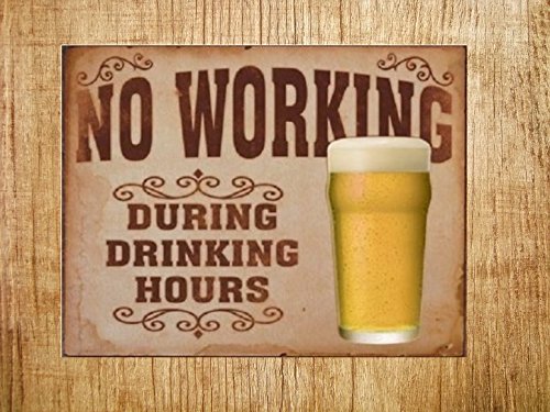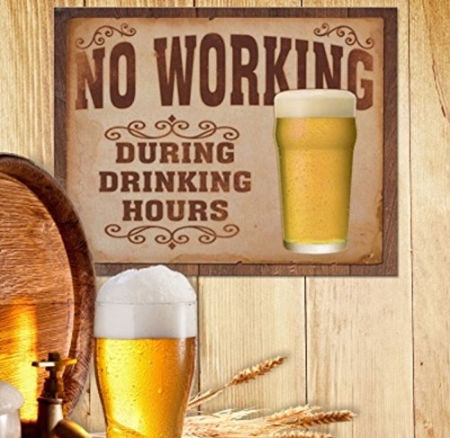DELIVERS FREE HUMOR TO YOUR HOME/HOME BAR/MAN CAVE/OFFICE/GAMES ROOM/PUB: No one will disagree as this NO WORKING DURING DRINKING HOURS tin sign is a surefire way to get some laughs out of your friends or family. Perfect for your games room, bar, pub, diner, man cave, rec room, or anywhere you have wall space.