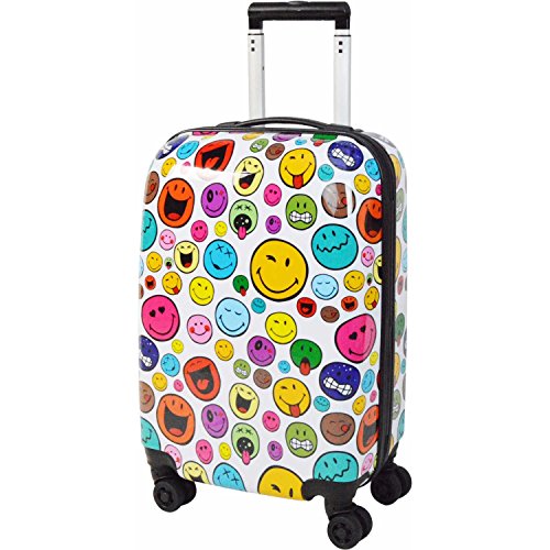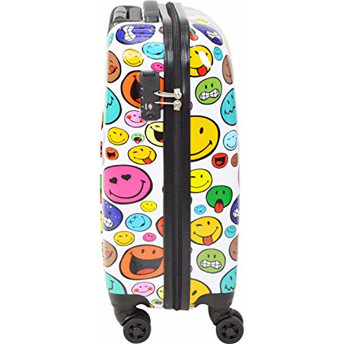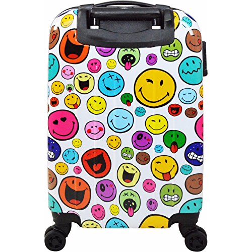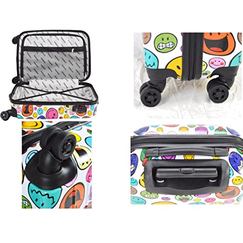 Product Description Get yourself this all new travel cases with this fun smiley emoticons design. This is fun and totally durable to carry your stuff. A great item to have. Set includes: 1 suitcase; 26 x 16 x 10 inches. Features: Hardshell, Rolling, Spinner and Durable | Materials: Polycarbonite 0