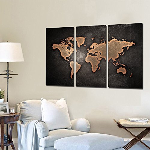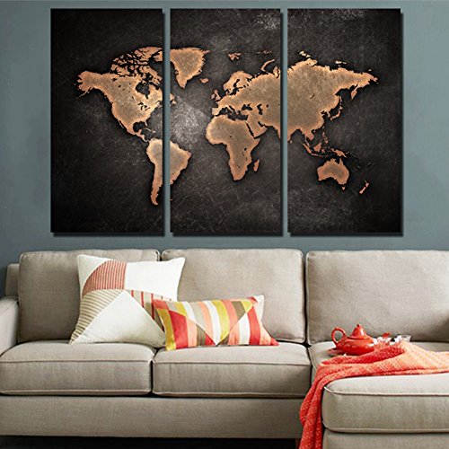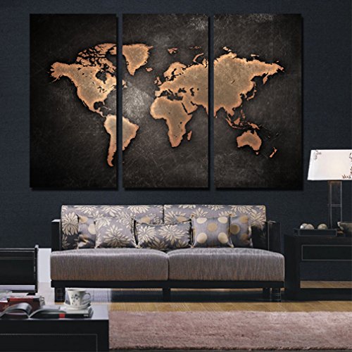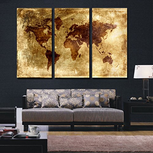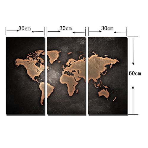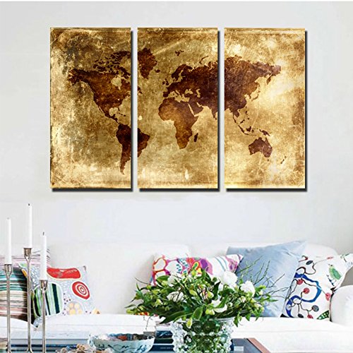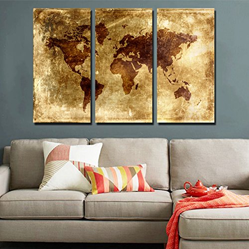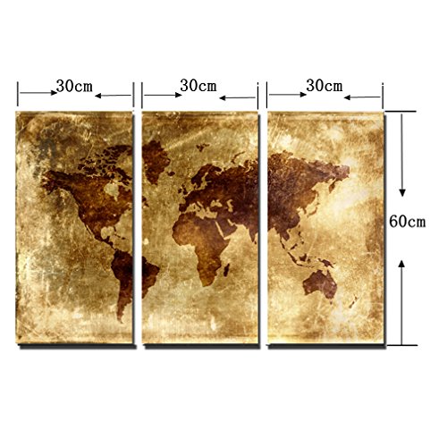 -. Title : Canvas P.R.Ints Map Art Wall Decor - 3 Panel Large World Map Pictures P.R.Int on Canvas Antiquated Style - Vintage Map of World Painting Canvas Art for Home and Office Decoration