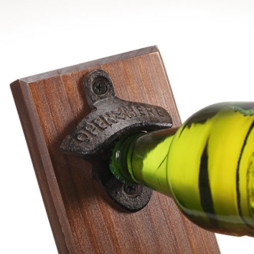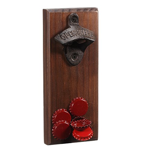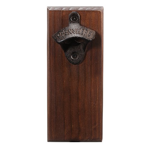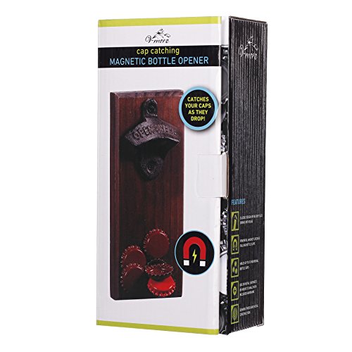 V-More Magnetic Beer Bottle Opener with Magnetic Cap Catcher Wood Wall-Mounted and Fridge Magnet 8-inch Tall for Daily Use Bar Perfect Gift