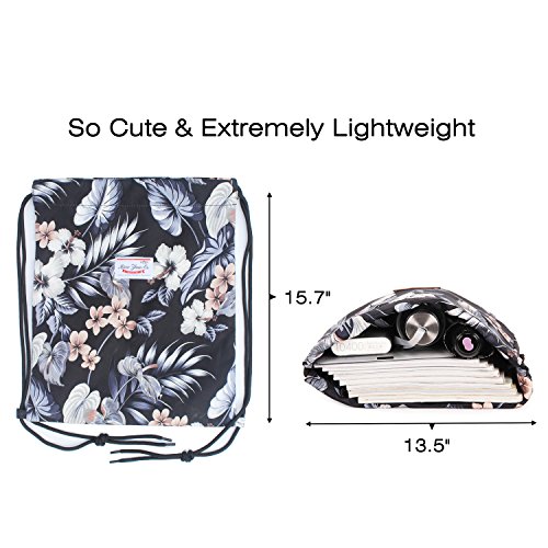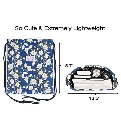 1.Good size, big enough for water bottle and towels etc...Nice alternative to duffle bag. 2.Super light and flexible material won't add burden to your carrying like other backpacks. 3.Beautiful fresh colors makes the bag vivid and unique. 4.Waterproof good for taking the essentials to the beach and not afraid the rain anymore. 5.Packable, easy to store when not in use.