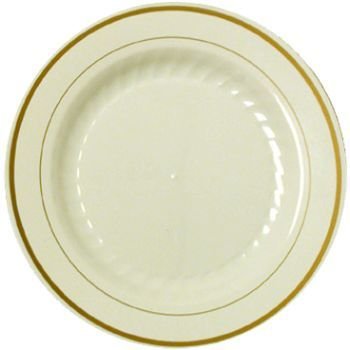 MASTERPIECE PLASTIC 6-INCH PLATES, IVORY W/GOLD RIM 15 PER PACK