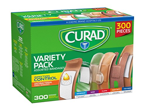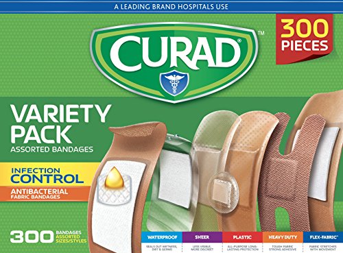 -. Binding : Health and Beauty -. Brand : Curad -. EAN : 0888277420031 -. Feature : Curad Bandage Variety Pack has six different bandage styles for every at home or small business need / All bandages have a 4-sided seal to keep dirt and germs out / Features 30 Antibacterial Fabric Bandages to help prevent infection / Also included in the pack: 30 Medium Waterproof Bandages, 80 Assorted Sheer Bandages, 60 Plastic Bandages, 30 Assorted Heavy Duty Bandages and 70 Assorted Flex Fabric -. IsAdultProduct : 0 -. Label : Medline Industries -. Manufacturer : Medline Industries -. Model : CURCC300 -. MPN : CURCC300 -. NumberOfItems : 1 -. PackageQuantity : 1 -. PartNumber : CURCC300 -. ProductGroup : Health and Beauty -. ProductTypeName : HEALTH_PERSONAL_CARE -. PublicationDate : 2017-01-19 -. Publisher : Medline Industries -. ReleaseDate : 2017-01-19 -. Studio : Medline Industries -. Title : Curad Variety Pack Assorted Bandages, 300 Count -. UPC : 888277420031