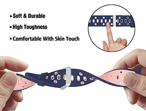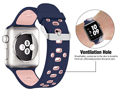 - DURABLE MATERIAL & HUMMANIZED DESIGN: High quality material is applied on every part of this pretty product. This apple watch band is made from high performance silicone, great waterproof, soft, flexible and friendly to skin. Perfect precise cut holes design gives you anti-slip and breathable enjoyment