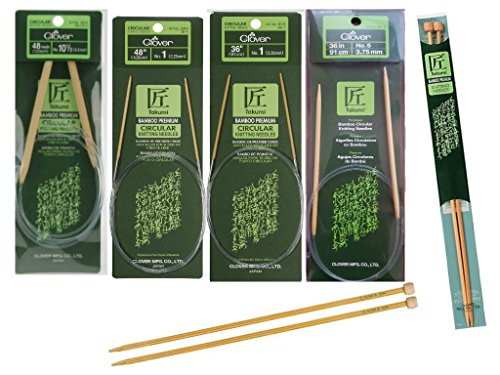 Clover Takumi Bamboo Circular Knitting Needles - 48 Inch Size 10.5; 48 Inch Size 1; 36 Inch Size 1; 36 Inch Size 5; 13 Inch Needles Size 0; 9 Inch Needles Size 1