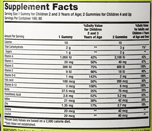 Kirkland Signature Complete Children's Multivitamin Gummies are a perfectly balanced formulation of key vitamins and minerals to support the healthy growth and development of children. These gummies are wildly delicious! Natural fruit flavors in orange, cherry and green apple. Designed specifically to meet the nutritional needs of children who may not be able to get enough vitamins from diet alone.Feature