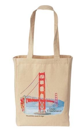 Golden Gate Bridge Natural Canvas Shopping Tote Bag with Watercolor Picture