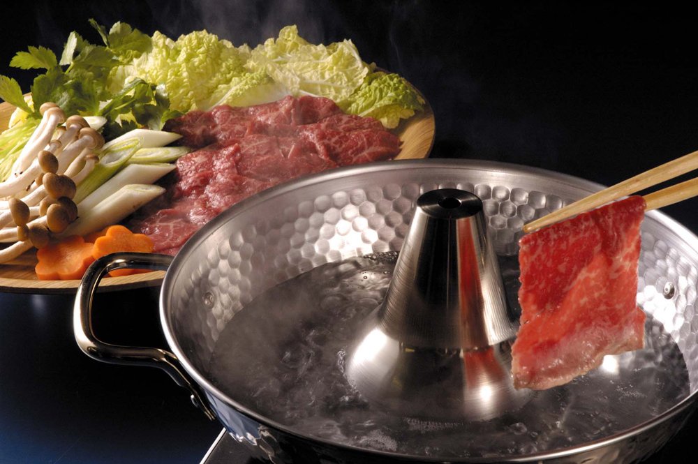 The chimney-shaped thing in the shabu-shabu pan makes the heat conduction and convection efficient.