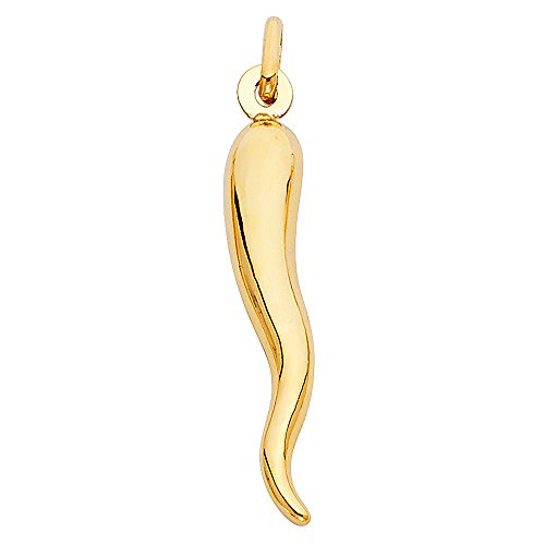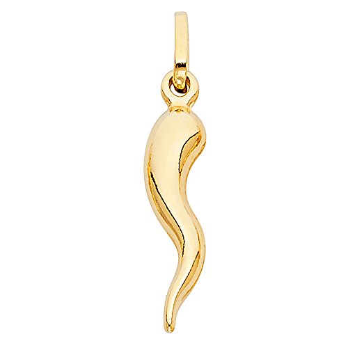 It is said that the Italian horn is used to protect the wearer from evil. Therefore wearing the Italian horn or Cornicello in the form of jewelry has become very popular in pop culture. Our beautiful 14K Yellow Gold Small Cornicello Italian Horn Pendant is sure to serve it's purpose for any of those who believe in it's powers. Having been made from brilliant 14 karat yellow gold, this is sure to catch the attention of any who can appreciate its craftmanship. The high polish finish only further lifts the item's appraisal, and can be worn for any occasion. Order this today or browse our incredible selection of fine gold jewelry.Feature