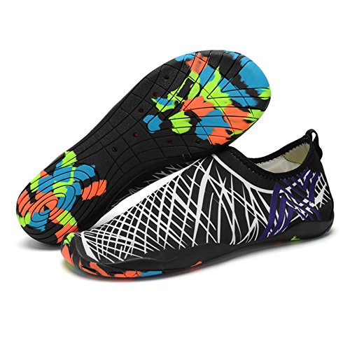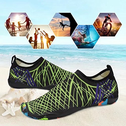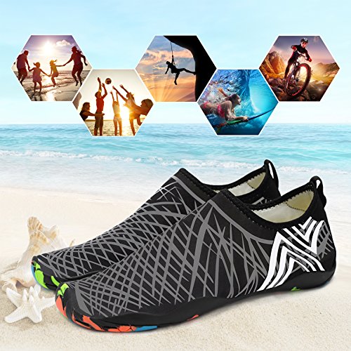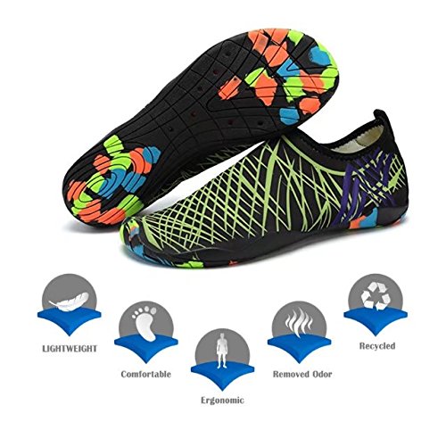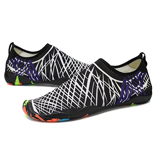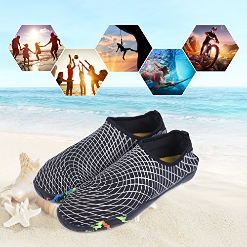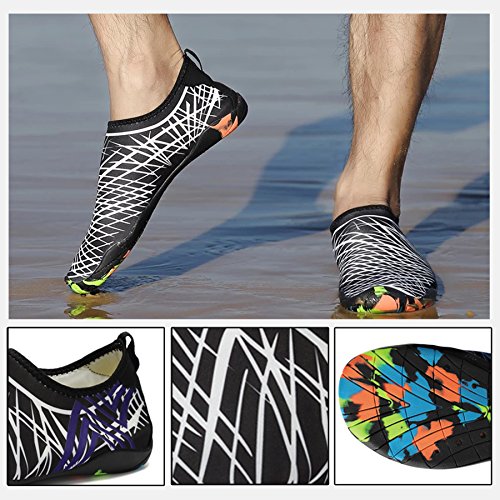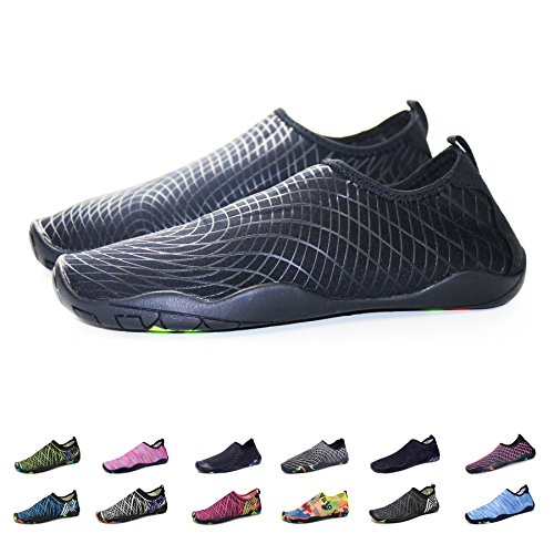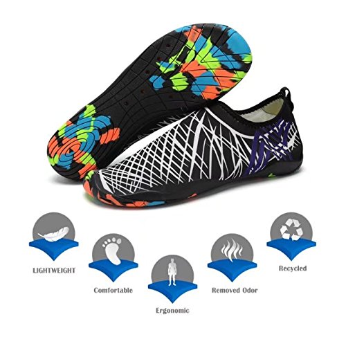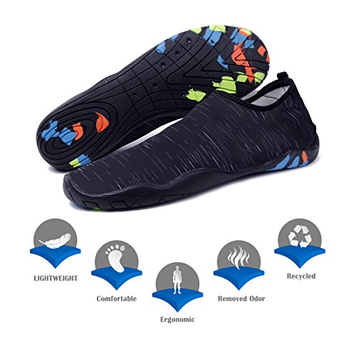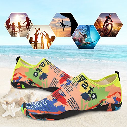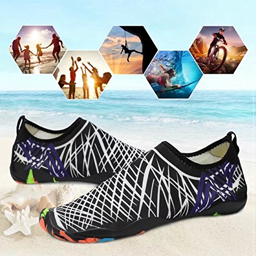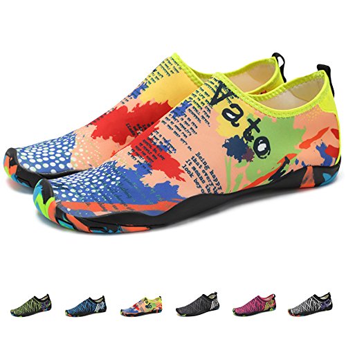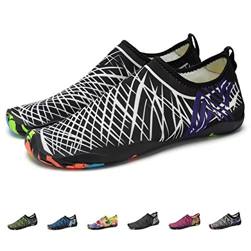 Binding : Apparel Product Description KEALUX is specialized in kinds of shoes,we have excellent after-sales service, no matter you have any problems,we'll solve it for you.We are strive to provide superior products to every customer . EXERCISE OF FOOT MUSCLE AND COMFORTABLE SOLE: The rubber soles, with a really comfortable and thick foam arch-support insert inside of them, are flexible yet thick enough to protect your feet from stepping on rock and stone. Breathable and smooth fabrics with fine stretch on uppers, flexible and comfortable. By using foot muscle almost same as barefoot walking, exercise of foot muscle and finger pressure effect for sole are available. KINDS OF COLORS The water shoes available in 6 colors,all of the color is stylish and classic,suitable for both men and women a good gift for your lover. Enjoy the relaxing time with your family. Stretchy Upper Super stretchy material offers incredible breath-ability and quick-dry properties, and warps your feet tightly without uncomfortable feeling of pressure. Easy to Wear and Take Off The pull tap at the heel allows for quick and easy entry, protecting your feet from dripping off. Note:Please check the size for our description image