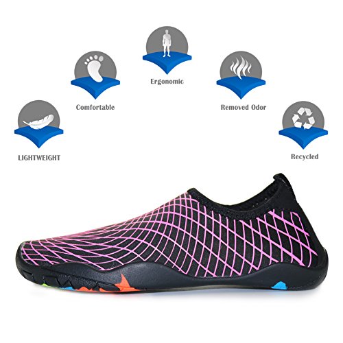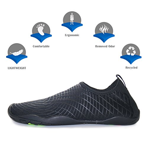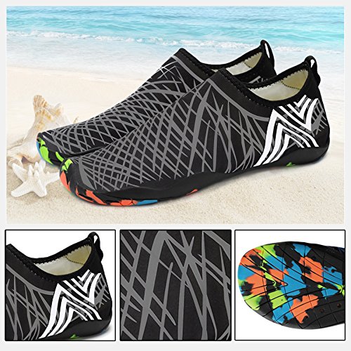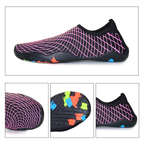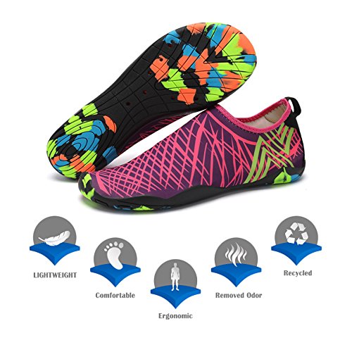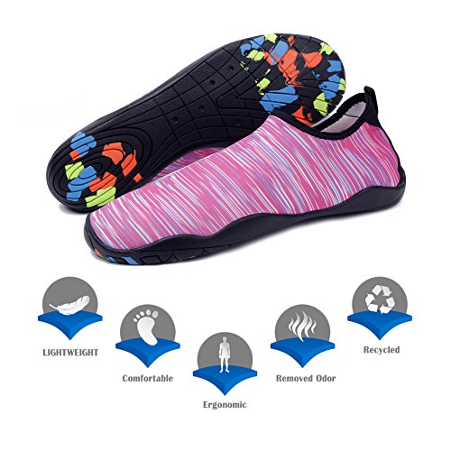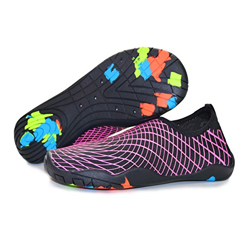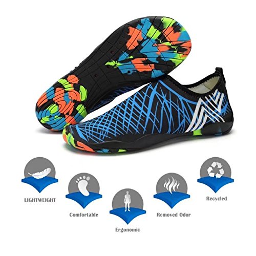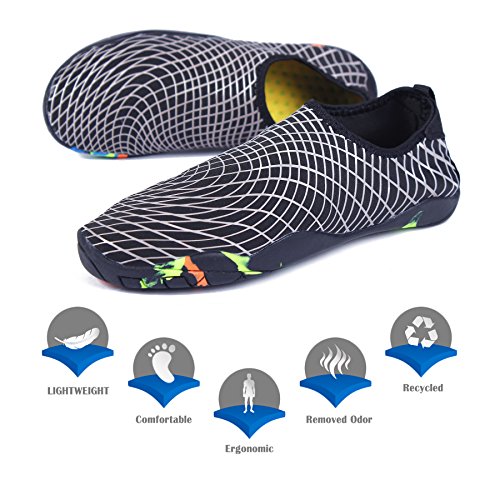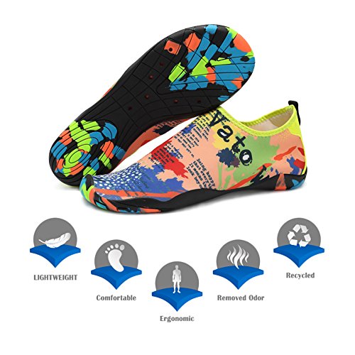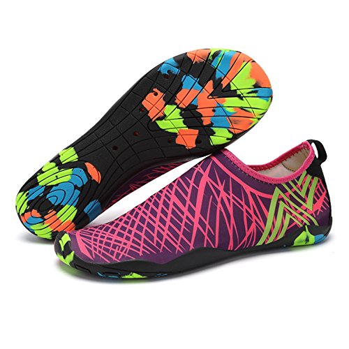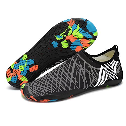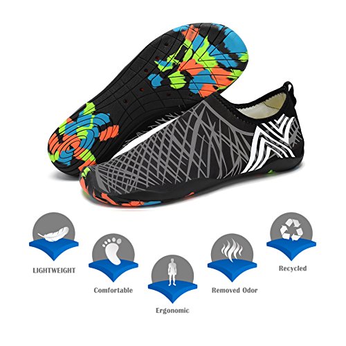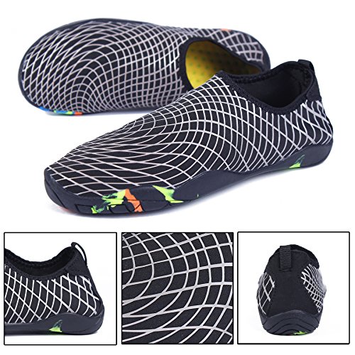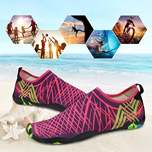 Binding : Apparel Product Description KEALUX is specialized in kinds of shoes,we have excellent after-sales service, no matter you have any problems,we'll solve it for you.We are strive to provide superior products to every customer . EXERCISE OF FOOT MUSCLE AND COMFORTABLE SOLE: The rubber soles, with a really comfortable and thick foam arch-support insert inside of them, are flexible yet thick enough to protect your feet from stepping on rock and stone. Breathable and smooth fabrics with fine stretch on uppers, flexible and comfortable. By using foot muscle almost same as barefoot walking, exercise of foot muscle and finger pressure effect for sole are available. KINDS OF COLORS The water shoes available in 6 colors,all of the color is stylish and classic,suitable for both men and women a good gift for your lover. Enjoy the relaxing time with your family. Stretchy Upper Super stretchy material offers incredible breath-ability and quick-dry properties, and warps your feet tightly without uncomfortable feeling of pressure. Easy to Wear and Take Off The pull tap at the heel allows for quick and easy entry, protecting your feet from dripping off. Note:Please check the size for our description image