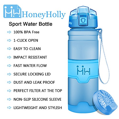 -HoneyHolly water bottle made from high quality durable Tritan copolyester toxin free food grade plastic, Food Grade PP material lid, Food Grade Silicone seal ring. One Click Flip Cap to have a quick drink. Designed for people of any age.