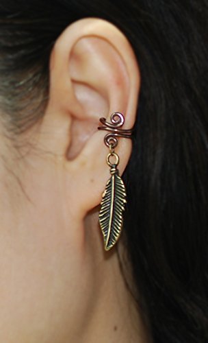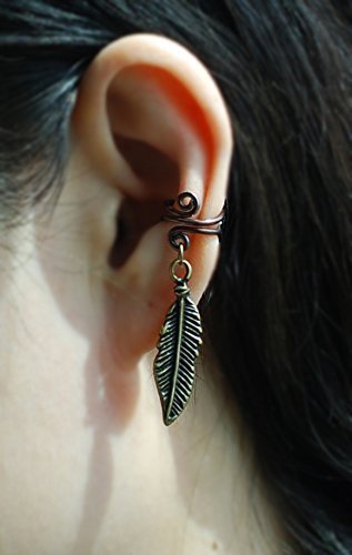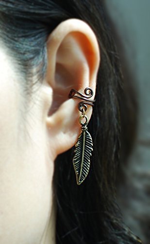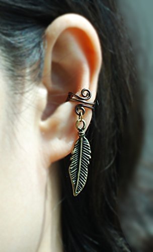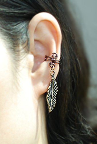-. Title : 18 gauge Ear cuff with Bronze Metal feathers ,Ear Jacket, Ear Wrap,cartilage earring / Please select an option.