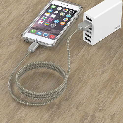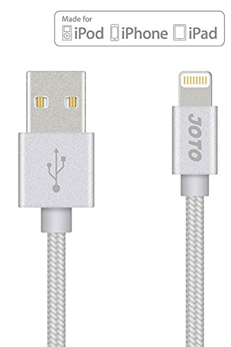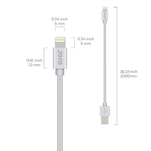 Lightning to USB Cable, [Heavy Duty Nylon Braided] Apple MFi Certified JOTO Lightning Cable (3.3ft long), Data Sync Charge Cable for iPhone 6S 6 Plus 6 5s 5c 5, iPad Pro, Air 2, mini 4, iPod (Silver)
