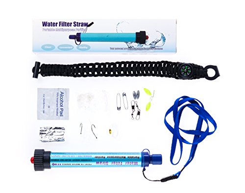 Oblero Personal Water Filter Straw in our 14 in 1 Emergency Preparedness Survival Gear Tools Kit for Travel, Camping, Hiking, Backpacking, Climbing or Hunting