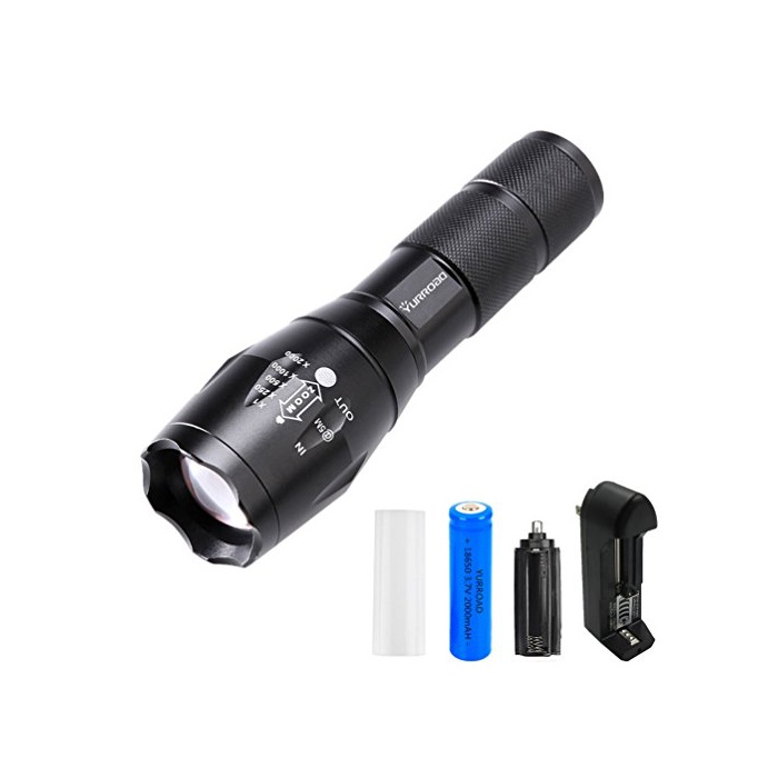 YURROAD 10W하이 파워CREE XM-L T6 LED회중전등 토치 알루미늄3000루멘초 고휘도 줌 가능야의 광옥외 조명 랜턴(회중전등+1 절18650전지+충전기)