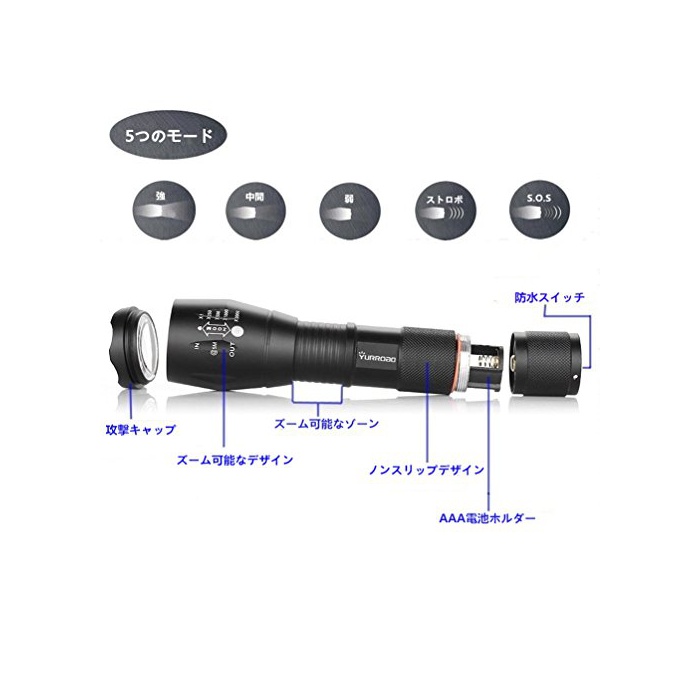 원본상품명: 10WハイパワCREE XM-L T6 LED中電トチアルミ超高輝度ズム可能夜の光屋外照明ランタン