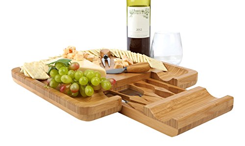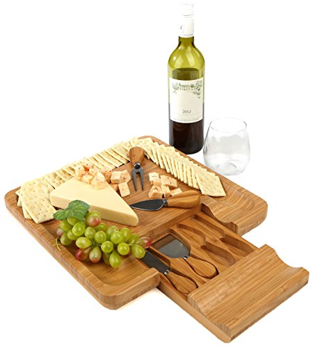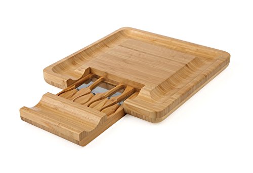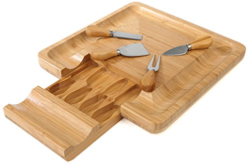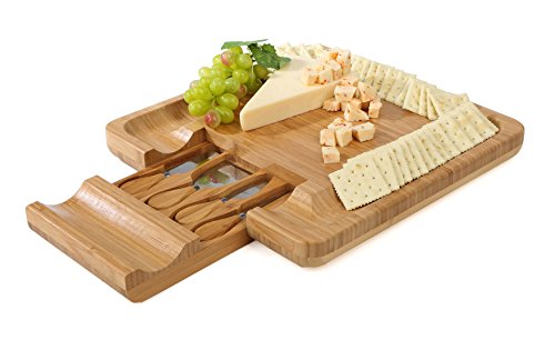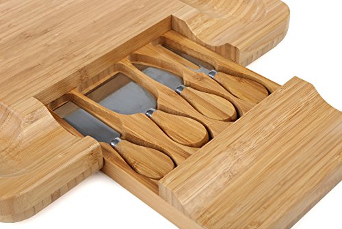 Complete Cutlery Set Included: The built-in pullout drawer comes with a full cutlery set. The handy cutting knives that come with this bamboo cheese board cut through hard cheeses with minimal effort. They are made of high quality stainless steel with bamboo handles that are easy to grip