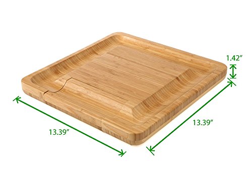 The Best Choice For Serving Cheese: The key to enjoy slices of Italian Ricotta, English Cheddar, or French Vacherin with a glass of wine for holiday entertaing is to have our modern bamboo cheese board with pull out cutlery drawer. Indented grooves border the cheese board that hold crackers, nuts, or olives and designed with a hidden drawer with four utensils, cheese knife, this bamboo-crafted tray will make a perfect serving board for entertaining guest