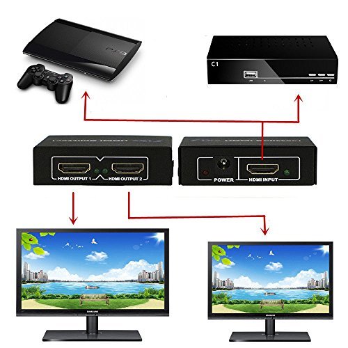 This HDMI splitter cable is ideal for connecting one HDMI compatible device (Xbox, Blueray, DVD players, PS3) to two visual output devises.It takes a signal from one device such as a Bluray player and will direct to one of two output devices that are plugged into it