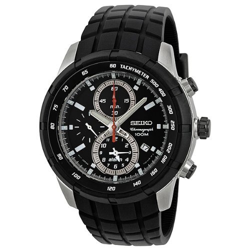 세이코import Seiko Mens SNAD95 Chronograph Black Dial Black Rubber Alarm Watch【병행수입품】
