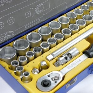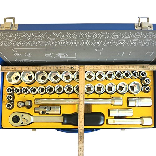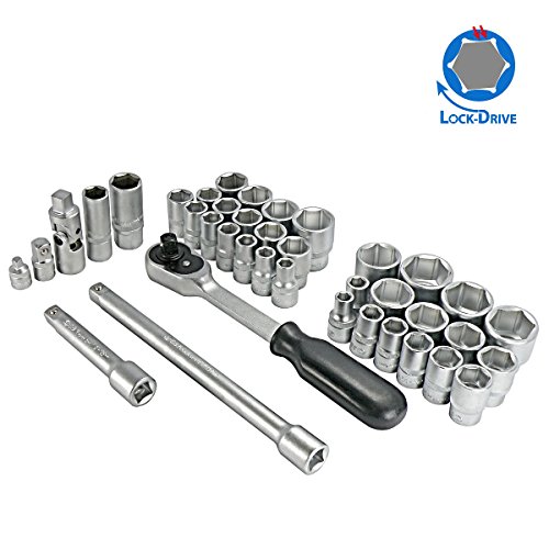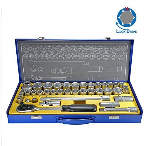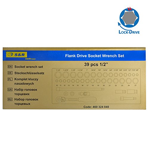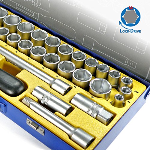 S&R Steckschlüsselsatz Knarrenkasten 39-tlg. 1/2" LOCK-DRIVE Profil, Werkzeugset Werkzeugkasten 1/2 Zoll in Metallbox, Ratschenkasten Industrie Qualität